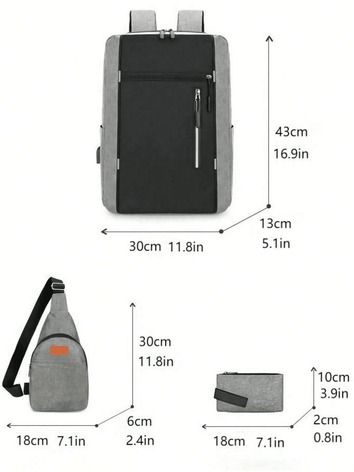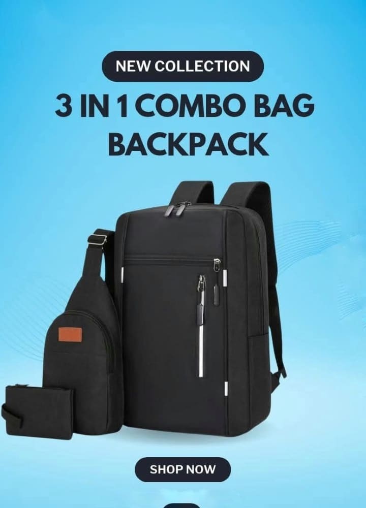 থ্রি ইন ওয়ান মাল্টিফাংশনাল ব্যাকপ্যাক সেট (ল্যাপটপ ব্যাগ + সাইড ব্যাগ + মিনিব্যাগ) – backpack combo set
