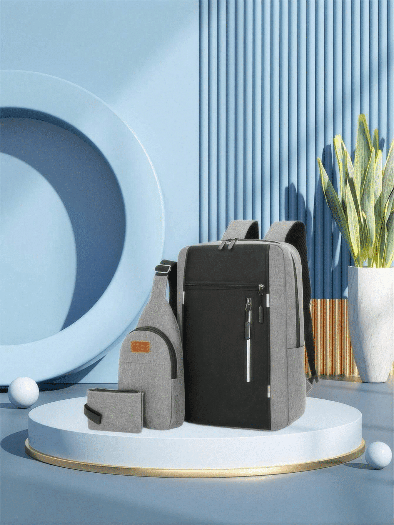 🎒 থ্রি ইন ওয়ান স্টাইলিশ ব্যাকপ্যাক সেট – একসাথে স্টাইল, স্পেস আর স্মার্টনেস! || 3 in one backpack combo set